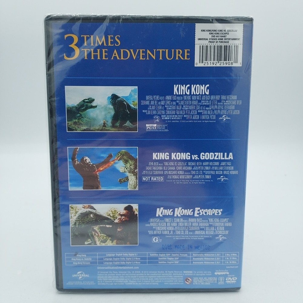 This DVD set is a must-have for fans of action, adventure, and fantasy. Starring Andy Serkis, Jack Black, Adrien Brody, and directed by Peter Jackson, this movie offers 5 hours and 15 minutes of excitement and thrills. The movie follows King Kong as he battles Godzilla and tries to escape from captivity. The DVD comes in a tall/DVD case and has an aspect ratio of 16:9. It is rated PG-13 and includes subtitles in English, French, and Spanish. The DVD also features B-Movie and Cult cinematic movements, as well as being captioned and in widescreen. This multi-genre movie is perfect for a movie night with friends and family.