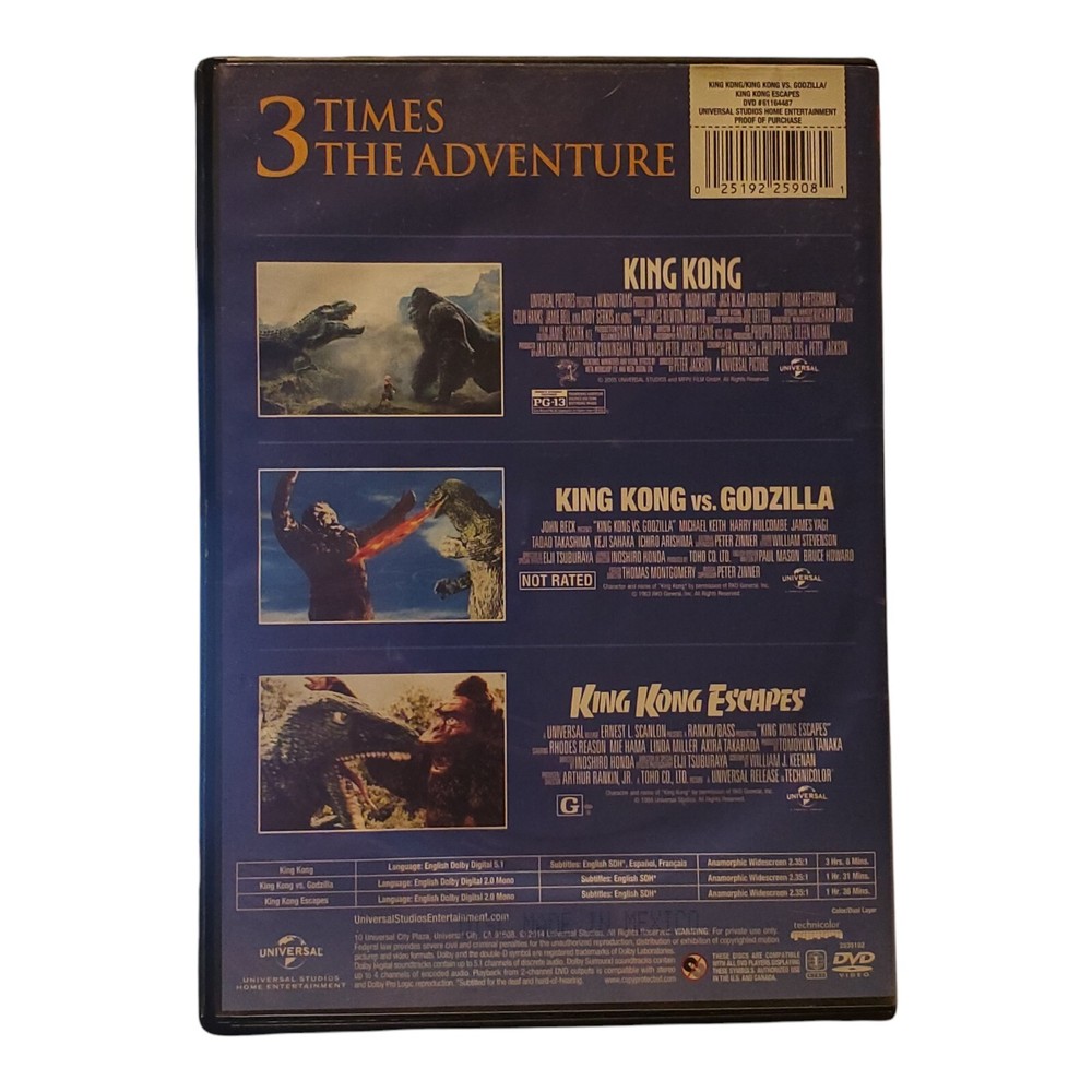 Universal Monster movie Kong vs Godzilla, King Kong Escapes 3 cult films DVD...