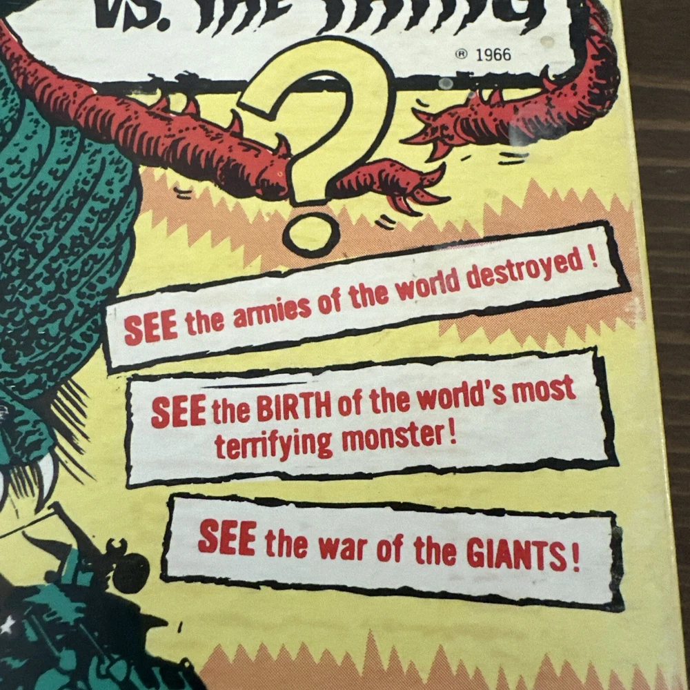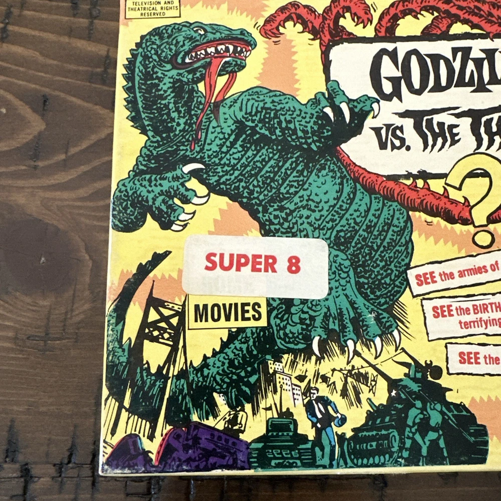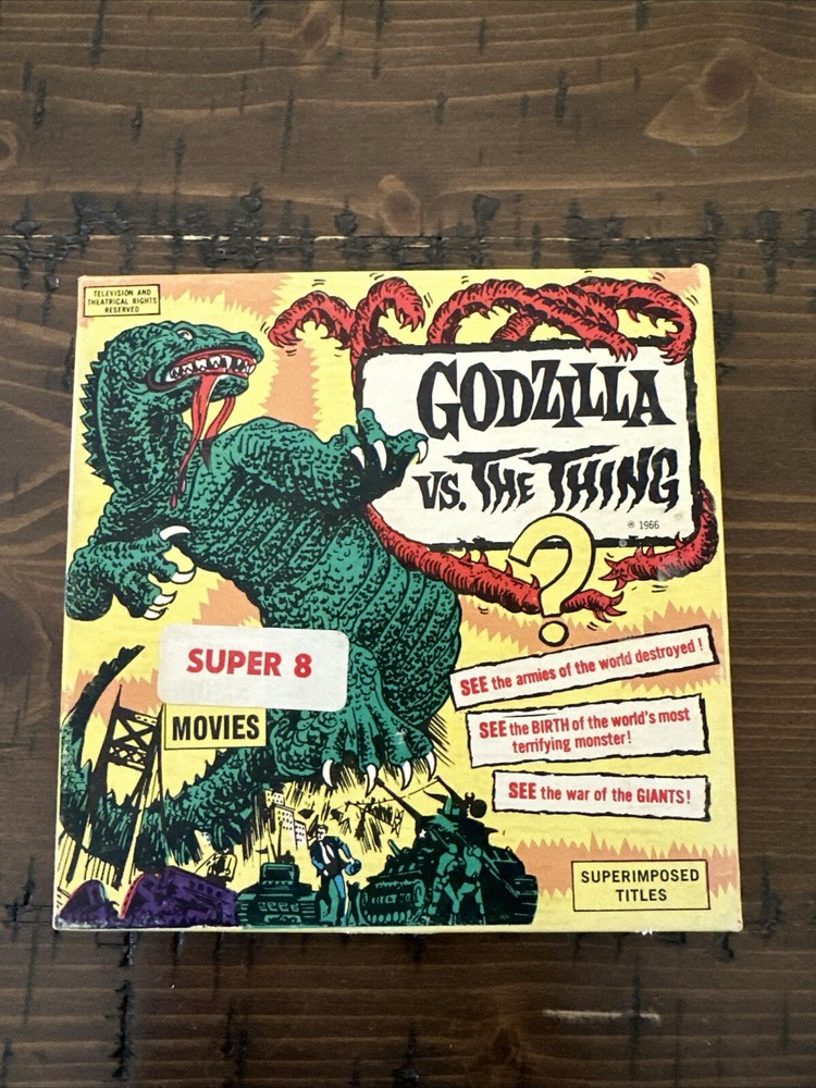 This vintage Super 8 mm home movie is a rare find for any Godzilla collector. The film features the iconic Kaiju battling against The Thing in a thrilling science fiction and horror genre. Produced by Ken Films Inc in the United States, this original movie from 1966 has been preserved and is a must-have addition to any collection. With aspects such as Brand, Convention/Event, Year, Signed, Genre, and Country/Region of Manufacture all contributing to its rarity, this Godzilla VS The Thing vintage home movie is a unique find that will impress any fan. Don't miss your chance to own this piece of horror movie history. The box is in excellent condition and the film it self is also in great shape as seen in the photos.
