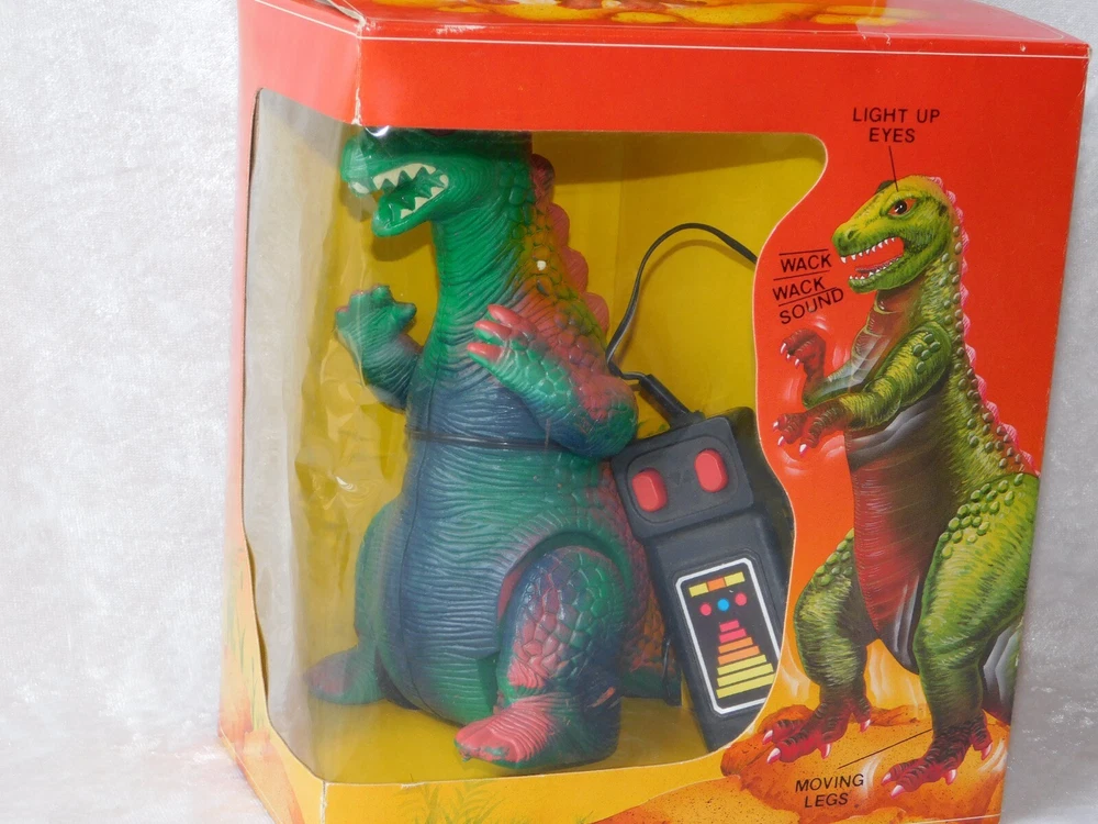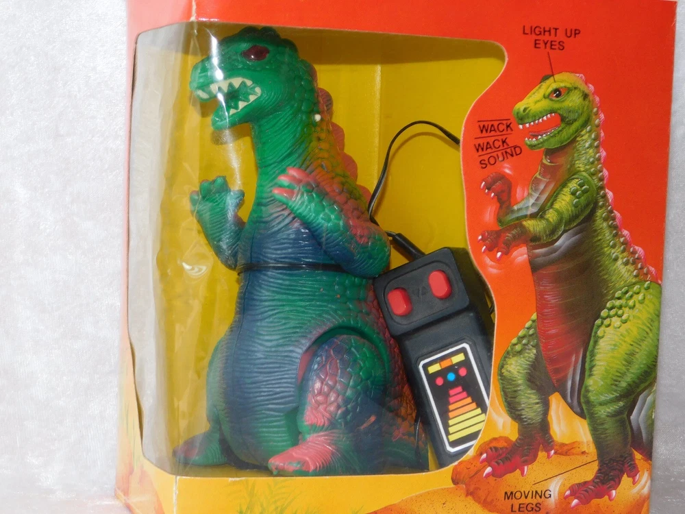 VTG 1980s Godzilla T REX Dinosaur Remote Control Battery Operated w/ Box PLEASE NOTE THAT OUR BUSINESS IS ANTIQUES AND VINTAGE COLLECTIBLES. ALL ITEMS ARE PREVIOUSLY LOVED AND MOST NOT IN PERFECT CONDITION UNLESS OTHERWISE STATED. MANY OF THE ITEMS ARE VERY VERY OLD. PLEASE VIEW PHOTOS CAREFULLY AS WE HAVE DONE OUR BEST TO SHOW ANY IMPERFECTIONS IN THE PICTURES. Up for auction is a VTG 1980s Godzilla T REX Dinosaur Remote Control Battery Operated w/ Box The toy is new in the box. Sealed never opened THE FINE PRINT: *Please note that all electronics, musical instruments, pens, clocks and watches are sold as is. Returns are accepted but shipping must be paid by buyer. The only thing we guarantee is that these types of items will arrive in the same aesthetic condition as you see in the photos. *All international buyers must have a confirmed, translated to English, address. *We will only ship International shipments by Priority mail due to too many lost packages shipping by "economy". It's just not very economical for us, in the end. *All international taxes and duties are the responsibility of the buyer. There is no exception including in the event of a return. *Please do not ask us to change any documentation or anything else that violates ebay policies. *Color variations can occur dependent upon viewer's screen. *Due to the nature of our business we can not guarantee that any of these items come from a smoke free environment. I can only guarantee that our environment is smoke free. *+ Feedback is left after + feedback is received. *Special shipping instructions must be included at checkout. Be sure to visit Electric Antique's ebay store. Message us if you have any questions at all. Thanks for looking! Buyers must pay within three days of auction's end. Texas residents add 8.25% state sales tax to total. ALL SPECIAL SHIPPING INSTRUCTIONS SHOULD BE INCLUDED AT CHECK OUT SO THEY ARE SEEN AT TIME OF SHIPPING. PLEASE UNDERSTAND THAT WE RECEIVE MANY MESSAGES, QUESTIONS AND INSTRUCTIONS FROM HOPEFUL AUCTION WINNERS. INSTRUCTIONS SENT IN MESSAGES COULD RESULT IN BEING OVER LOOKED THANK YOU IN ADVANCE FOR YOUR COOPERATION! Most items are shipped next business day of cleared payment. Fragile or delicate items are packed with bubble wrap and/or packing peanuts. We ship all international priority and registered with the exception of Canada. Please message for Canadian shipping quote. INTERNATIONAL BUYERS ARE RESPONSIBLE FOR PAYING TAXES AND DUTIES THAT ARE INCURRED BY THEIR HOME COUNTRY. DO NOT DUPLICATE OR COPY! Template Made By: © InkFrog.com Auction Templates, Logos, Store fronts and more! inkfrog terapeak