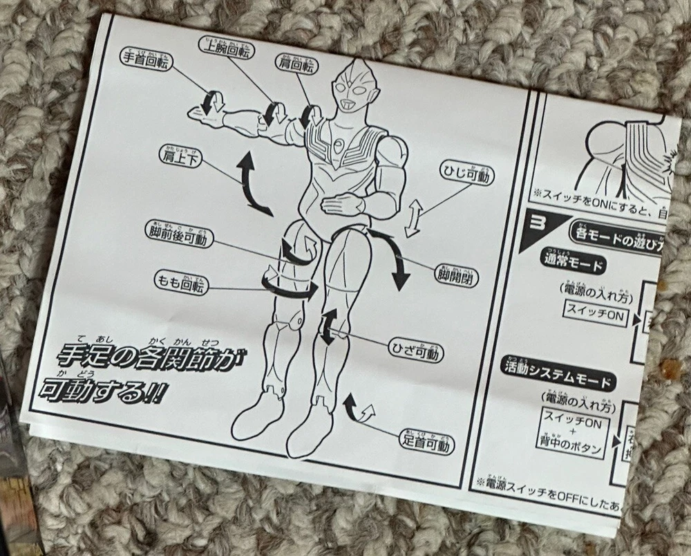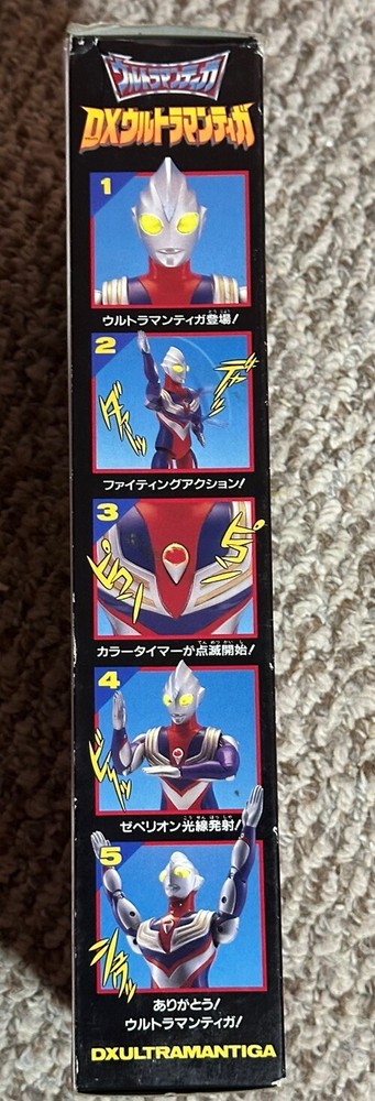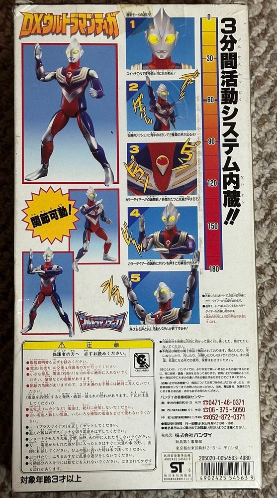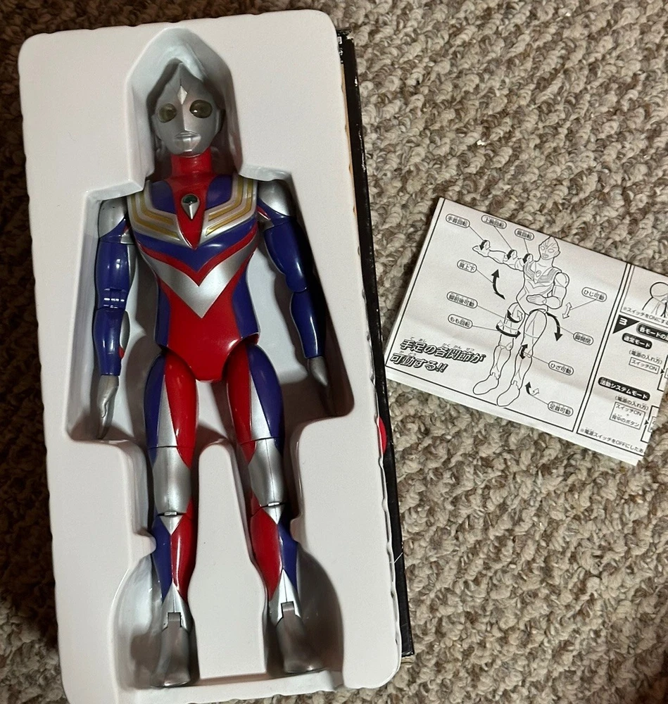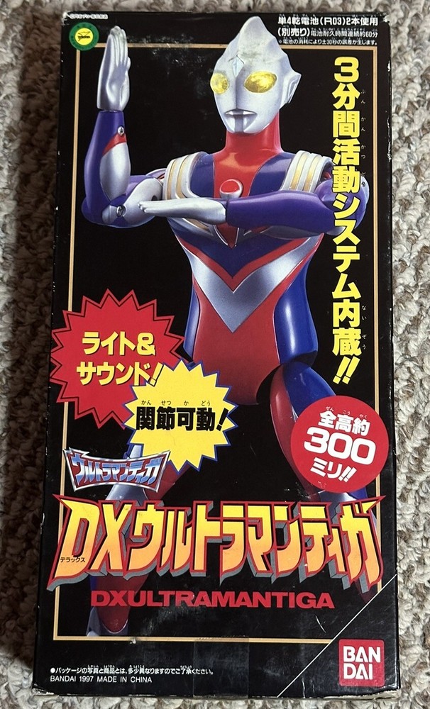 This vintage Bandai Ultraman Tiga DX action figure from 1997 is a rare find for collectors and fans alike. With its original packaging and features, this piece is a must-have for any Ultraman or Bandai enthusiasts. The figure depicts the iconic Tiga character in a boxing pose, ready for action. Made in China for the Japanese market, this original licensed reproduction is part of the Ultraman franchise and is sure to bring back childhood memories for those who grew up watching the show. Add this piece to your collection and relive the excitement of Ultraman Tiga. Lights up with sound effects tested and in working order.