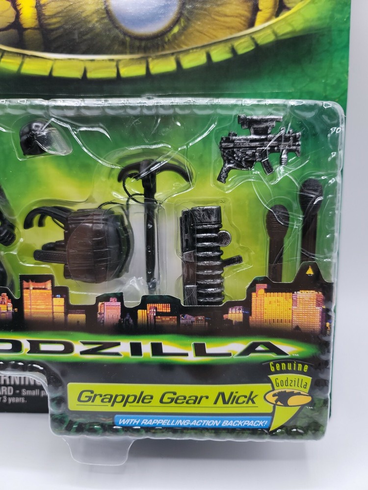 Vintage Godzilla Grapple Gear Nick Action Figure Set 1998 Sealed. Box shows slight wear. Shipped with USPS First Class Mail. Please see all photos for description and condition.