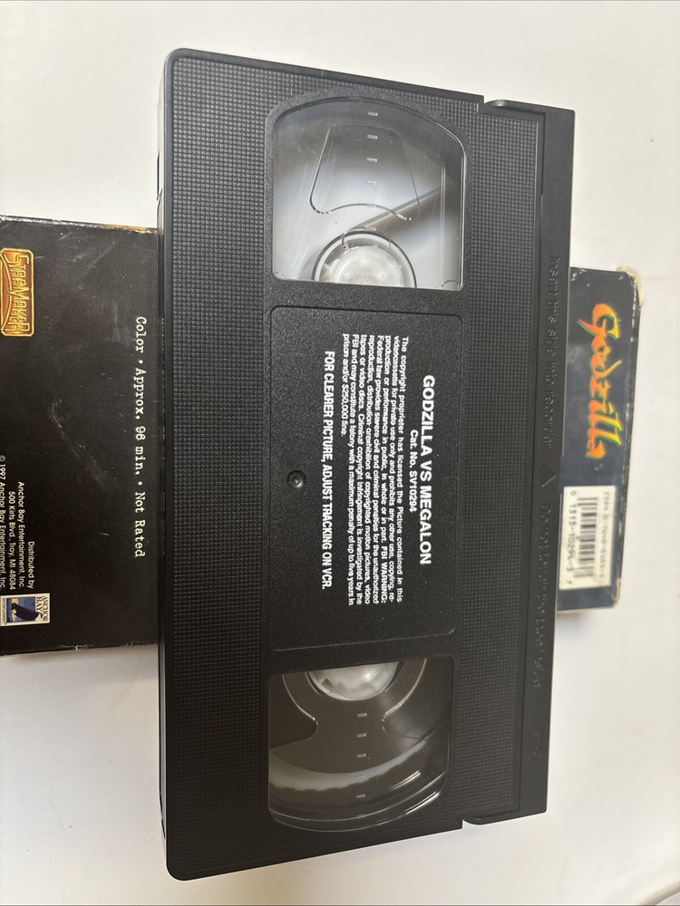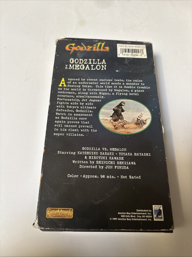 This vintage VHS tape features the epic battle between Godzilla and Megalon! Released by Anchor Bay Home Entertainment in 1997, this classic film is a must-have for any movie collection. Experience the thrills and excitement of this unforgettable cinematic showdown.