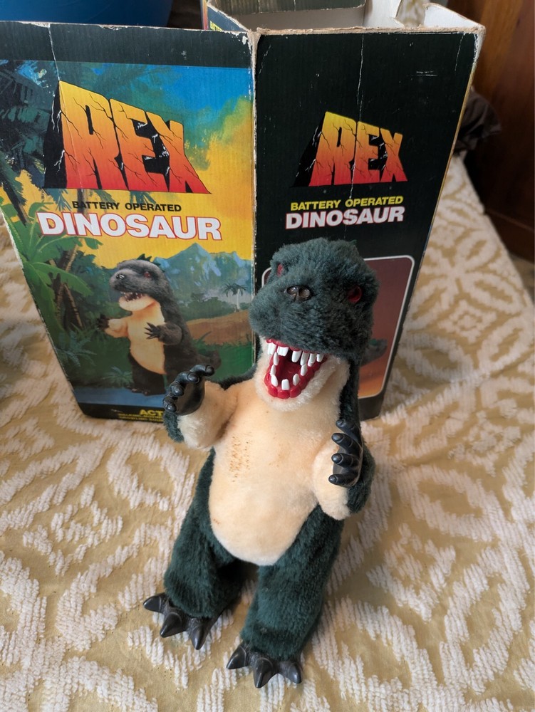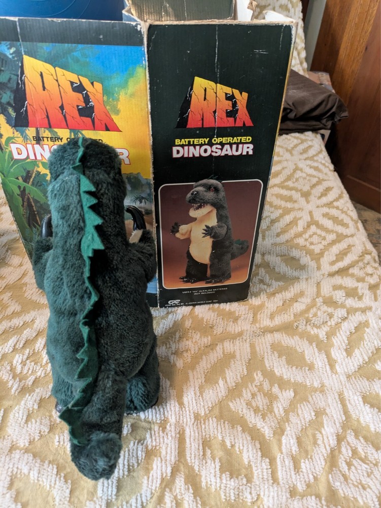 The Vintage Jamina World 1987 REX Plush Electronic Red Eyes Dinosaur is a rare and collectible toy from the Amino World brand. This plush dinosaur, themed after Godzilla, features electronic red eyes and is recommended for children aged 5 and above. With its vintage charm and unique design, this toy is sure to delight both boys and girls who are fans of robotic and space toys. Made in Korea, Republic of, this item is a nostalgic piece that captures the fun and imagination of 1980s playtime. Toy not working at this time but may be able to be fixed.