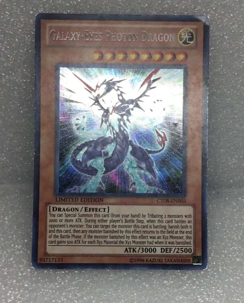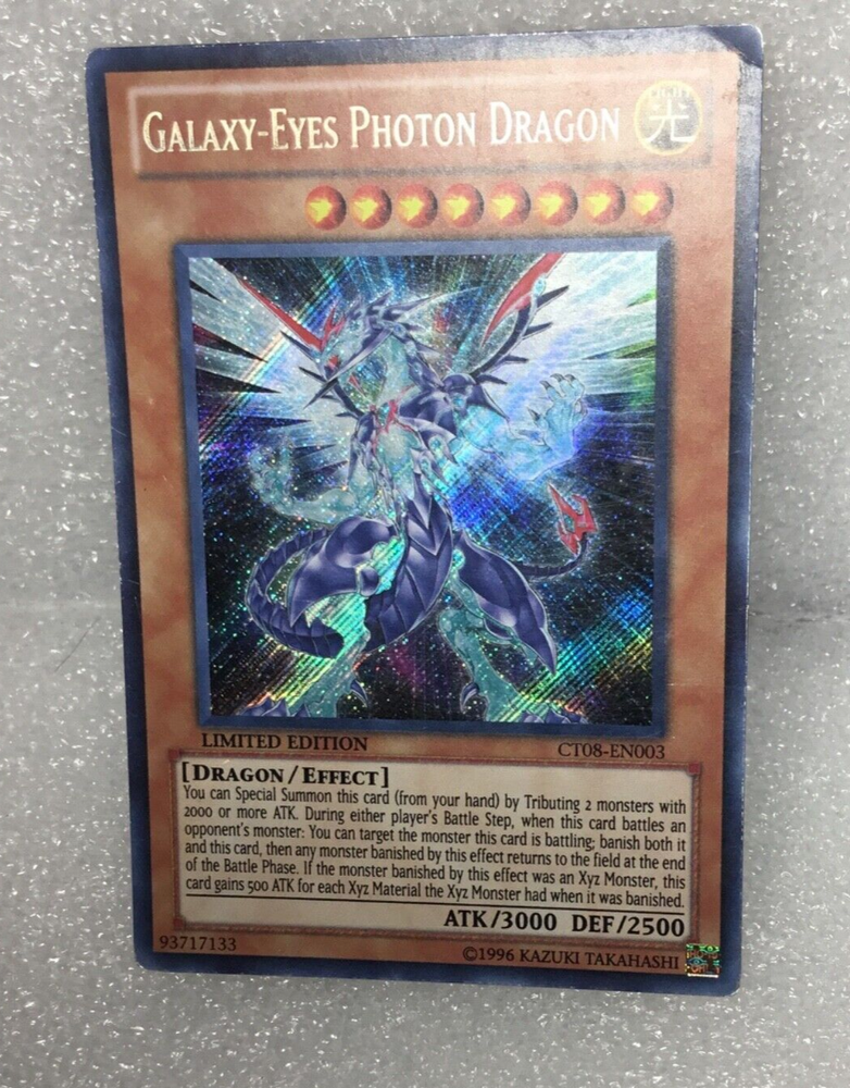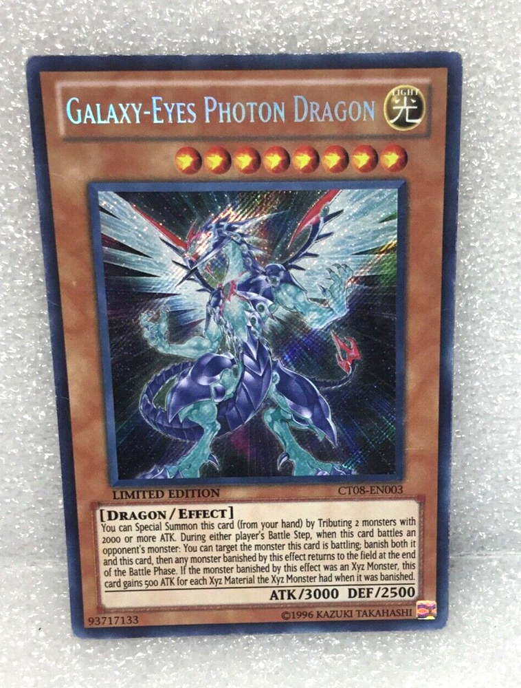 WELCOME TO OUR AUCTION! Vintage YUGIOH CARD GALAXY-EYES PHOTON DRAGON • Secret • CT08 EN003 not mint or perfect,has light rubs, light marks, upper right corner tiny bend as pictured We just picked up a large collection of Vintage Yugioh cards… Make sure you check out our other Auctions WE COMBINE SHIPPING ALL ADDITIONAL CARDS SHIP FREE!