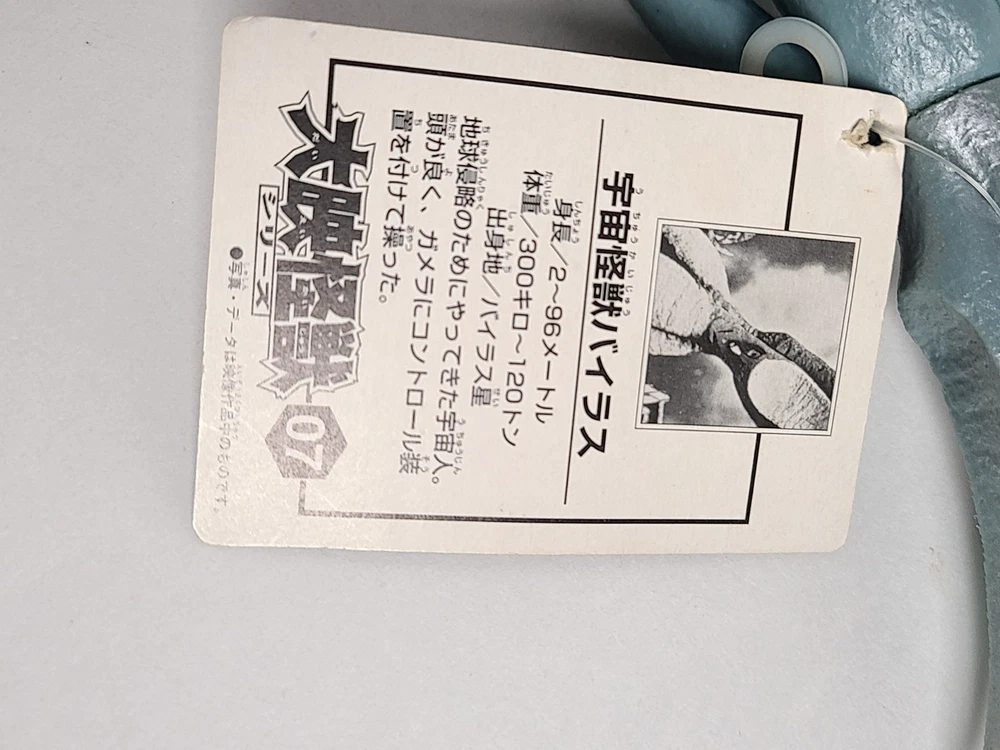 Viras, from Gamera vs. Viras, 8" vinyl figure (6" scale) from Bandai, complete with tag. The figure is in good shape. Some age/wear to tag, as shown. Please see photos for details....