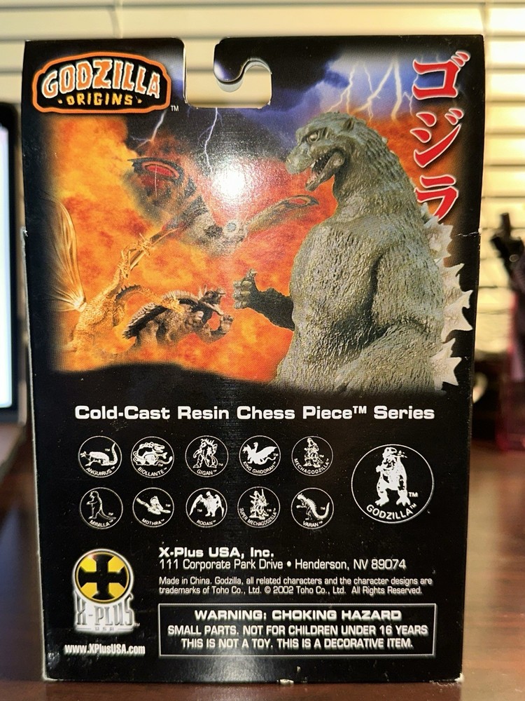 The X Plus FIRST Godzilla Origins - 2002 SEALED Box - Cold Cast Resin Chess Piece is a highly collectible item for fans of Godzilla and monster-themed toys. This chess piece, made by X-Plus in China in 2002, captures the essence of the legendary monster in a unique and detailed design. Perfect for collectors aged 17 years and up, this piece is a must-have for any Godzilla enthusiast looking to add a rare and valuable item to their collection.