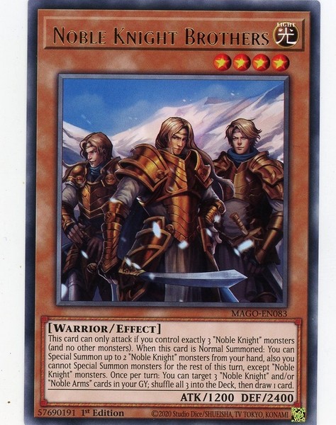 Frais de port groupé : La boutique Cartajouer permet de grouper les frais de port (sur votre panier, option demander le total au vendeur en haut à droite, valable unique pour ebay version ordinateur) Grouped shipping costs: The Cartajouer shop allows you to group the shipping costs (on your basket, option to ask the seller for the total at the top right, only valid for ebay computer version) YGO MAGO-EN083 R Noble Knight Brothers The image presenting the product or the card is not contractual, minimal differences may appear. L'image présentant le produit ou la carte n'est pas contractuel, des différences minimes peuvent apparaitre. Prestalia e-commerce solutions.