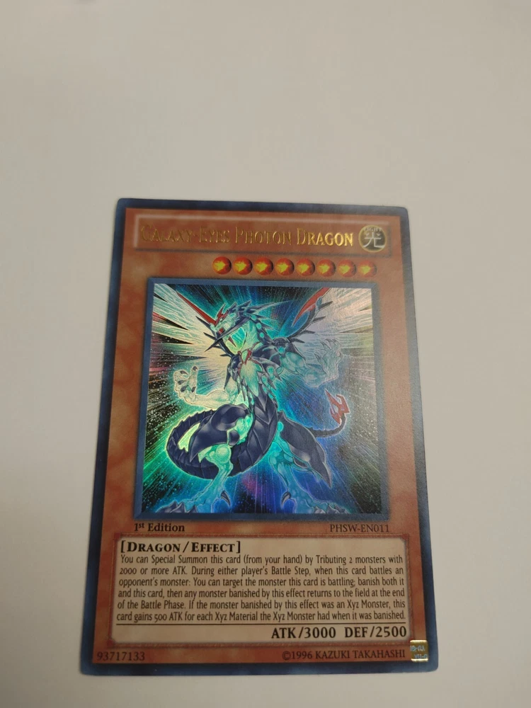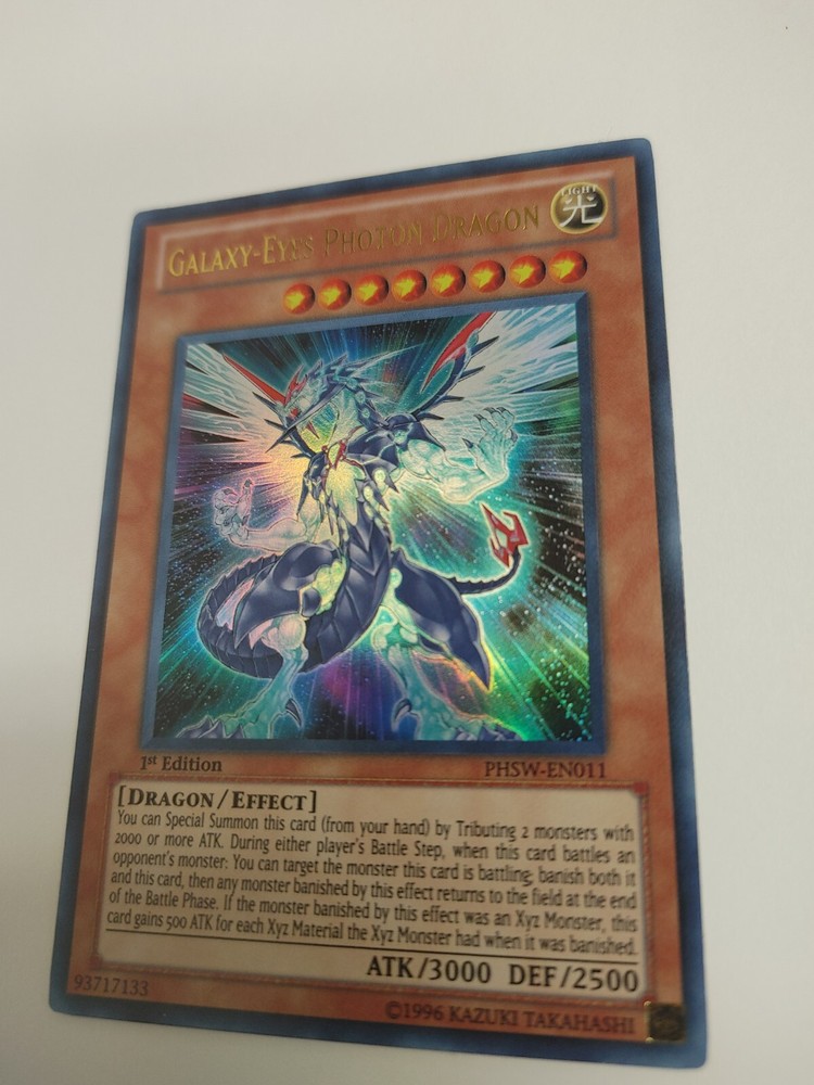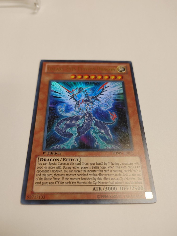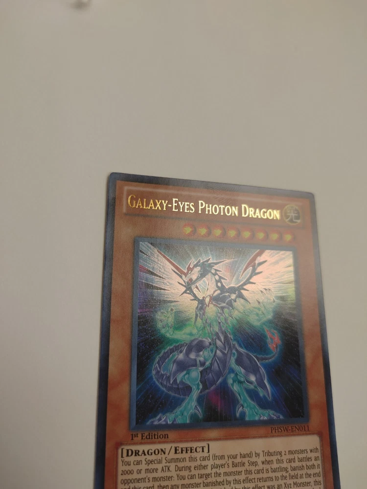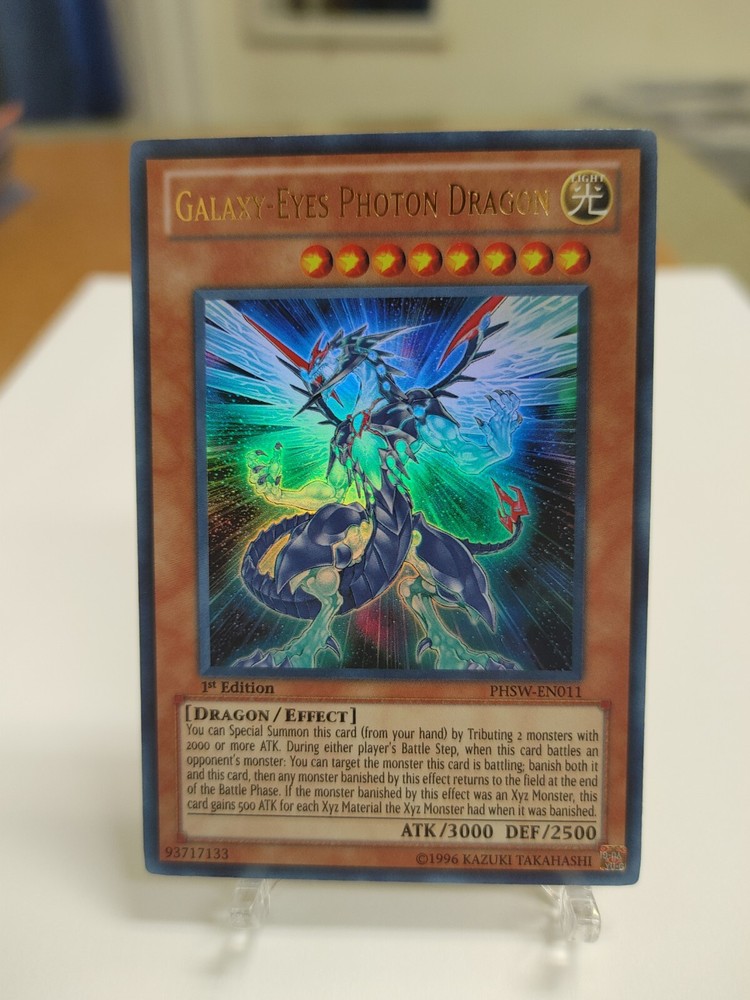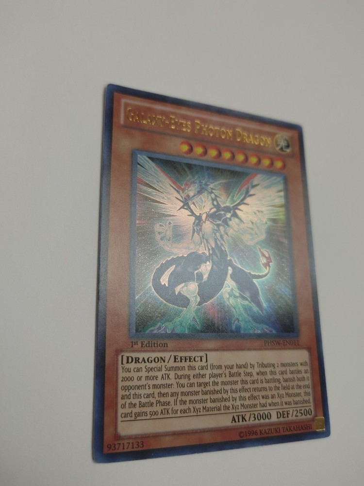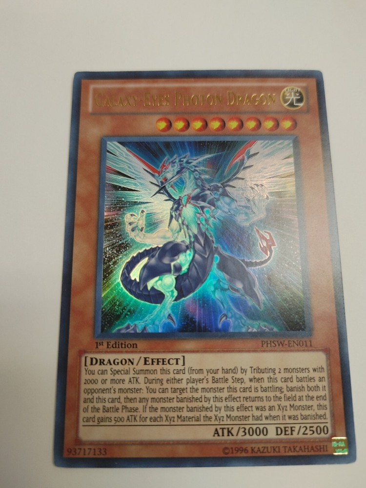 This Yu-Gi-Oh! TCG card is a rare find for collectors. Featuring the Galaxy-Eyes Photon Dragon and manufactured by Konami, this card is in near mint or better condition. Its condition type is ungraded and it is sold as an individual card. Perfect for fans of the game, this card is a must-have addition to any collection. Near mint.