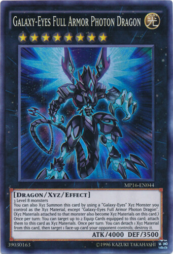 You are purchasing the card listed in the title and pictured here. Galaxy-Eyes Full Armor Photon Dragon - MP16-EN044 - Super Rare - Unlimited Edition 2016 Mega-Tins Mega Pack Condition: NM We grade cards along the following grading scale: NM - Near Mint LP - Lightly Played MP - Moderately Played HP - Heavily Played Damaged Items will be shipped via USPS First Class Mail. Cards will be protected in a hard top loader. Orders will be shipped within 48 hours of receipt of payment. Be sure to check out our other listings! We charge flat rate shipping, so after your first item shipping on everything else is free!
