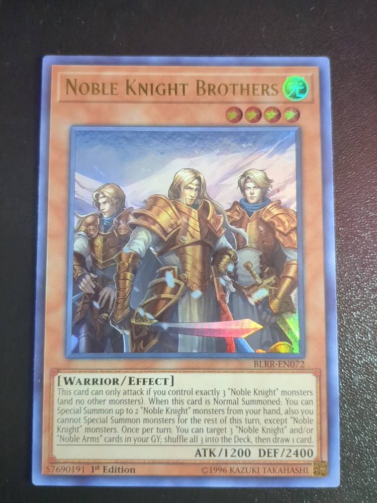 | Card Text | This card can only attack if you control exactly 3 "Noble Knight" monsters (and no other monsters). When this card is Normal Summoned: You can Special Summon up to 2 "Noble Knight" monsters from your hand, also you cannot Special Summon monsters for the rest of this turn, except "Noble Knight" monsters. Once per turn: You can target 3 "Noble Knight" and/or "Noble Arms" cards in your Graveyard; shuffle all 3 into the Deck, then draw 1 card. |