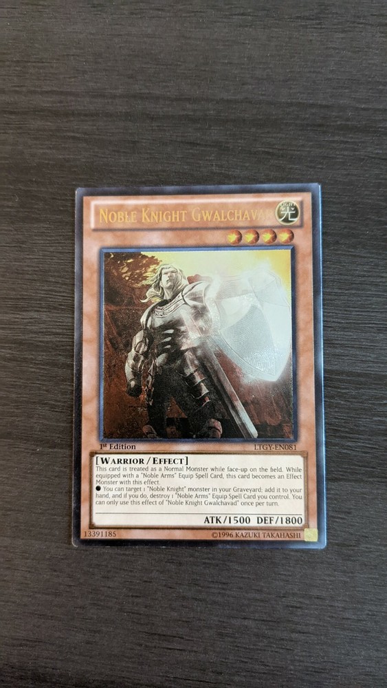 This Yugioh Noble Knight Gwalchavad ultimate rare is a must-have for collectors—looks amazing with slight wear but still in great condition for its age. The artwork pops, and it's awesome to own a first-edition piece from LTGY. Super happy with this purchase!