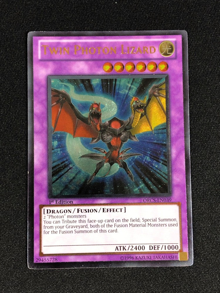 YUGIOH TWIN PHOTON LIZARD ORCS-EN039 1ST ULTIMATE LIGHT PLAY ALL CARDS IN THIS AUCTION ARE IN NEAR MINT TO MINT CONDITION UNLESS STATED OTHERWISE IN THE TITLE. AND, YOU ARE GUARANTEED TO RECEIVE THE CARD NAMED IN THE TITLE. PLEASE NOTE, IF THERE'S MORE THAN 1 COPY AVAILABLE, YOU MAY NOT RECIEVE THE SAME EXACT CARD IN THE PHOTO. HOWEVER, IT WILL BE THE SAME EXACT CARD IN THE TITLE, AND DESCRIPTION! PLEASE CONTACT ME IF THERE IS ANYTHING WRONG WITH YOUR ORDER OR SHIPPING BEFORE LEAVING FEEDBACK. PLEASE GIVE ME A CHANCE TO FIX ANY PROBLEM YOU MAY HAVE. THANK YOU! Shipping Information: Shipping and Handling for this auction will be Free inside the United States - With Tracking! International Shipping Available Through Ebay’s Global Shipping Program. (BUYER IS RESPONSIBLE FOR ANY TAX) **Read the TITLE to see the condition of the cards Before you place a bid. Any damaged cards will be listed as such In The Title (FOR EXAMPLE: Blue Eyes White Dragon LOB-001 - Play/Edgewear). If it doesn't say anything about damage, it is in near-mint to mint condition. If you have any questions, message me Before you place your bid.** RETURN POLICY: RETURNS ARE ACCEPTED IF THE ITEM ARRIVES DAMAGED, OR NOT AS DESCRIBED. RETURNS ARE NOT ACCEPTED FOR BUYERS REMORSE. CHECK OUT MY OTHER AUCTIONS! _gsrx_vers_1516 (GS 9.3 (1516))