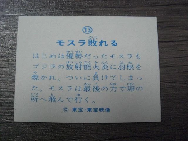 Item Title Yamakatsu Godzilla Vs. Mosura Card 26 Pieces Green Box Payment Supports managed payments Please pay within 5 days after auction is finished. About Us We are located in Japan. It's our pleasure to make you happy by proposing our recommend item. If you have any questions or request about items, please feel free to ask us. International Buyers - Please Note: -Import duties, taxes, and charges are not included in the item price or shipping charges. These charges are the buyer's responsibility. -Please check with your country's customs office to determine what these additional costs will be prior to bidding/buying. -These charges are normally collected by the delivering freight (shipping) company or when you pick the item up - do not confuse them for additional shipping charges. -We do not mark merchandise values below value or mark items as - gifts - The US and International government regulations prohibit such behavior. Thank you for your understanding.