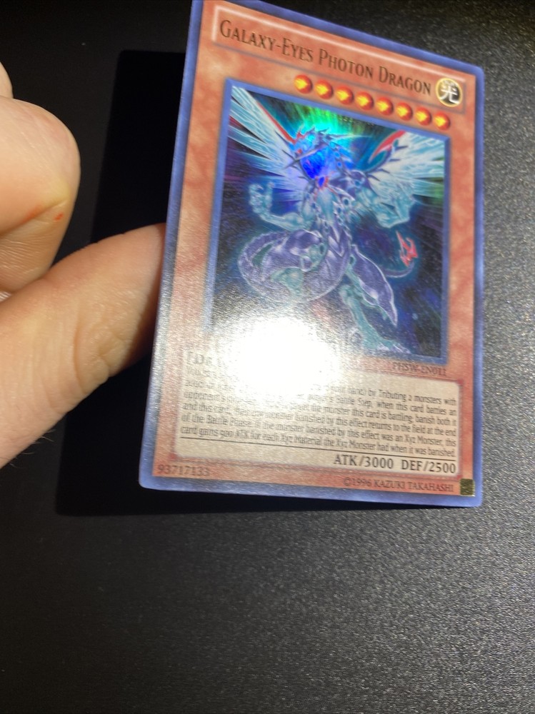 This card is absolutely stunning! The ultra rare foil makes Galaxy-Eyes Photon Dragon pop with incredible detail. Arrived in perfect near-mint condition, just as described. Fast shipping and well-protected—very happy with this purchase. Highly recommend this seller for Yu-Gi-Oh collectors!