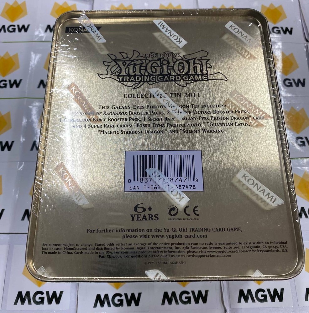 Yu Gi Oh! TCG Galaxy Eyes Photon Dragon 2011 Tin Brand New Factory Sealed Note to EU Based Customers: Orders that are above 150 Euros will have to undergo formal entry requirements at EU Border. A 10% Duty and respective VAT will be charged and billed by our Courier upon import Orders below 150 Euros, VAT will be collected by eBay at Checkout and IOSS will be passed to courier for import into EU Import duties and taxes are ALWAYS Buyer's responsibility Brand new, Factory Sealed, Unopened 100% authentic Ships via Expedited Courier Shipping will take around 3-5 working days Tracking number will be provided We reserve the right to ship in separate shipments when ordering multiple orders