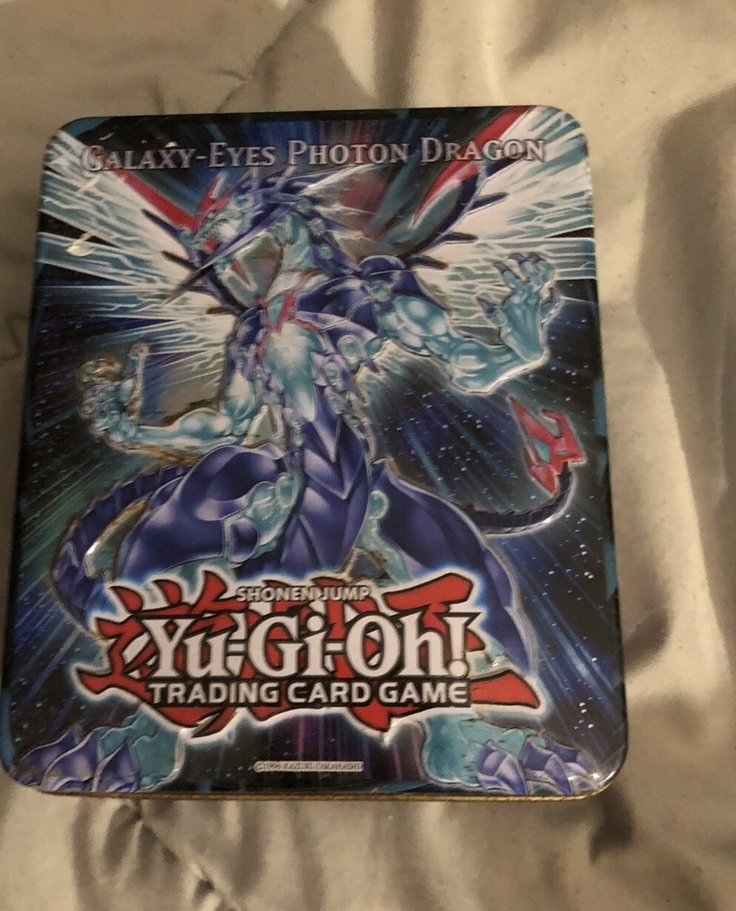 This Yu-Gi-Oh! TCG collectible tin box is a must-have for any fan of the game. It features the iconic Galaxy-Eyes Photon Dragon Zexal design and is made of durable metal material. The box is empty The box is configured for display and storage purposes only and is suitable for ages 10 and up. It is perfect for collectors and players alike. Don't miss out on the chance to add this unique and rare item to your collection.