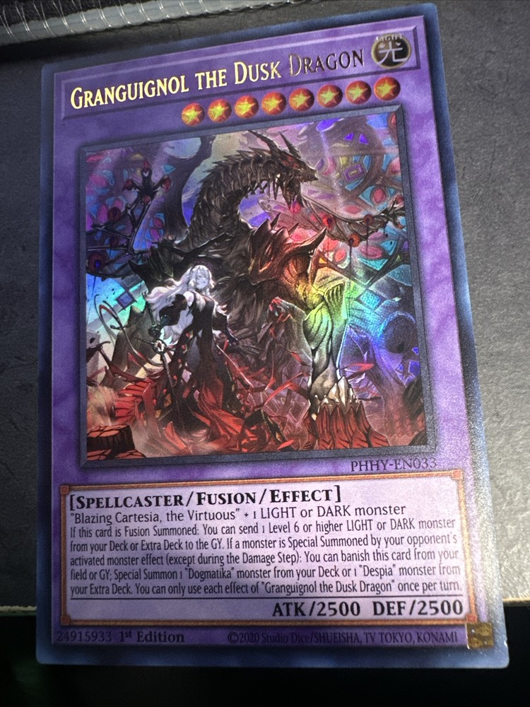 YuGiOh Granguignol the Dusk Dragon PHHY-EN033 1st Edition Ultra Rare. Condition is Ungraded. Shipped with USPS Ground Advantage.