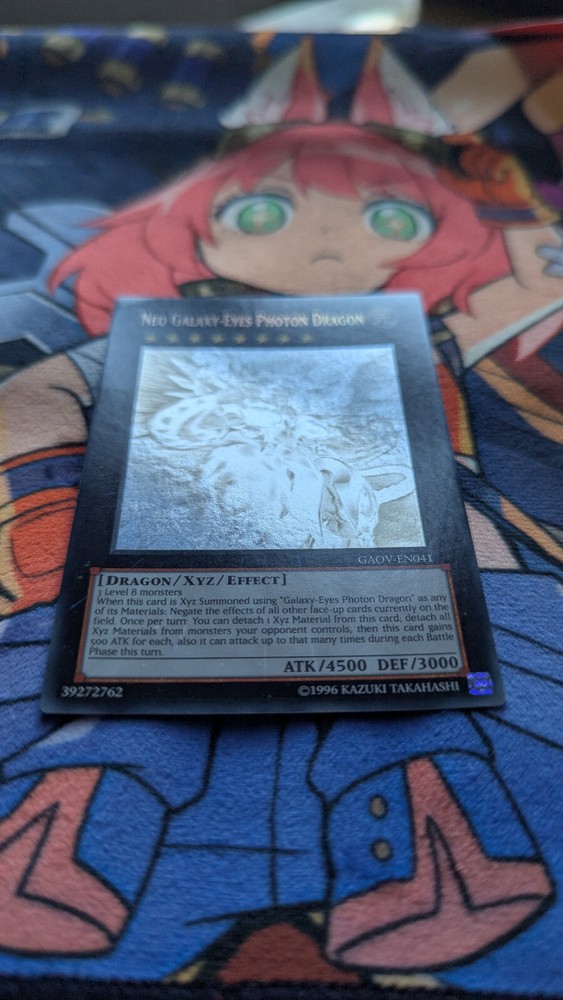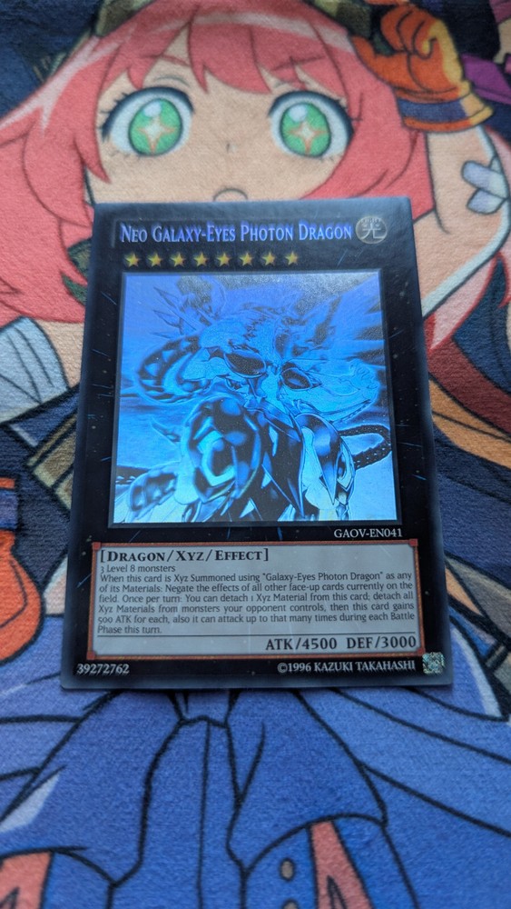 Here is a single copy of Neo Galaxy-Eyes Photon Dragonfrom the core set Galactic Overlord, with little to no wear but a light crease along one back side. Looks great in a card sleeve. An excellent addition to any aspiring collection! Front(s): Little to no noticeable wear, opposing corners showing signs of fraying out of sleeve. Light back crease showing through. Back(s): Light crease into the back right, opposing corners showing signs of fraying out of sleeve. Sent using a Japanese and Standard double-sleeve arrangement, with the use of toploaders, hardbacked envelope and/or bubble mailer in addition. Photos are taken to a 2268 x 4032 standard using Ultra HDR settings, camera being that of a Google Pixel 7. Feel free to message with any queries or concerns. Please check out my other listings as I will be listing many cards at varying price points over the coming days! Thanks!