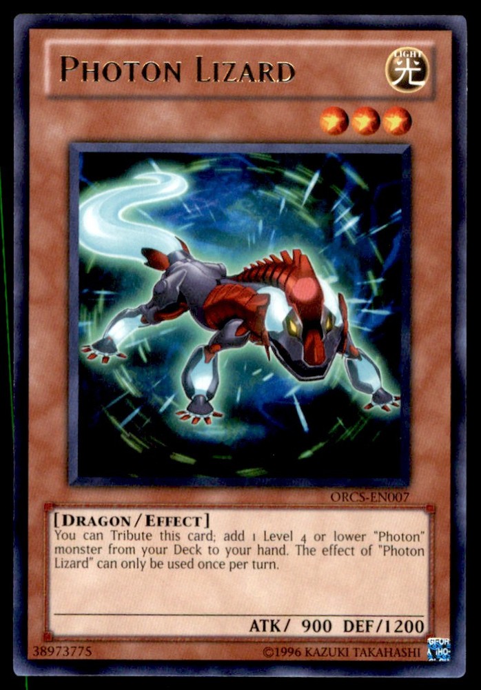 About Me Other Listings Feedback Add to Favorites Contact Me Bluenose Yu-Gi-Oh! Photon Lizard #ORCS-EN007 Near Mint No stock photo / These are real scans or pictures Details Description: Photon Lizard Category: Yugioh Year: 1996 Product: Yu-Gi-Oh! Card Number: ORCS-EN007 Special: Near Mint Dimensions: 3¼" x 2¼" SKU: YU B0004 R03 J (5) Payment Payment for buy it now is required immediately and for auctions it must be paid within 72 hours. Shipping Shipments usually make their way out in 1-2 business days. Returns and Claims Please view listing photo and description prior to purchase of card to make sure the card and condition is right for you! About Us Please keep in mind the following conditions .-------------------------------------------Near Mint: a card that shows very little to no signs of ware or usage such as very little whiting. -------------------------------------------Light Play: A card that shows signs of ware such as but not limited to whiting, slight bend or scratches. -------------------------------------------Heavy Play: A card that shows signs of ware, whiting, bending, creasing, folding or other various issues.-------------------------------------------Damaged: a card in very bad condition can have some or all of the above mentioned condition notes including peeling, stains, writing, etc.-------------------------------------------The photo in ads are the EXACT card you will recieve. Listing By Kronocard trading cards software v2.8.2.3