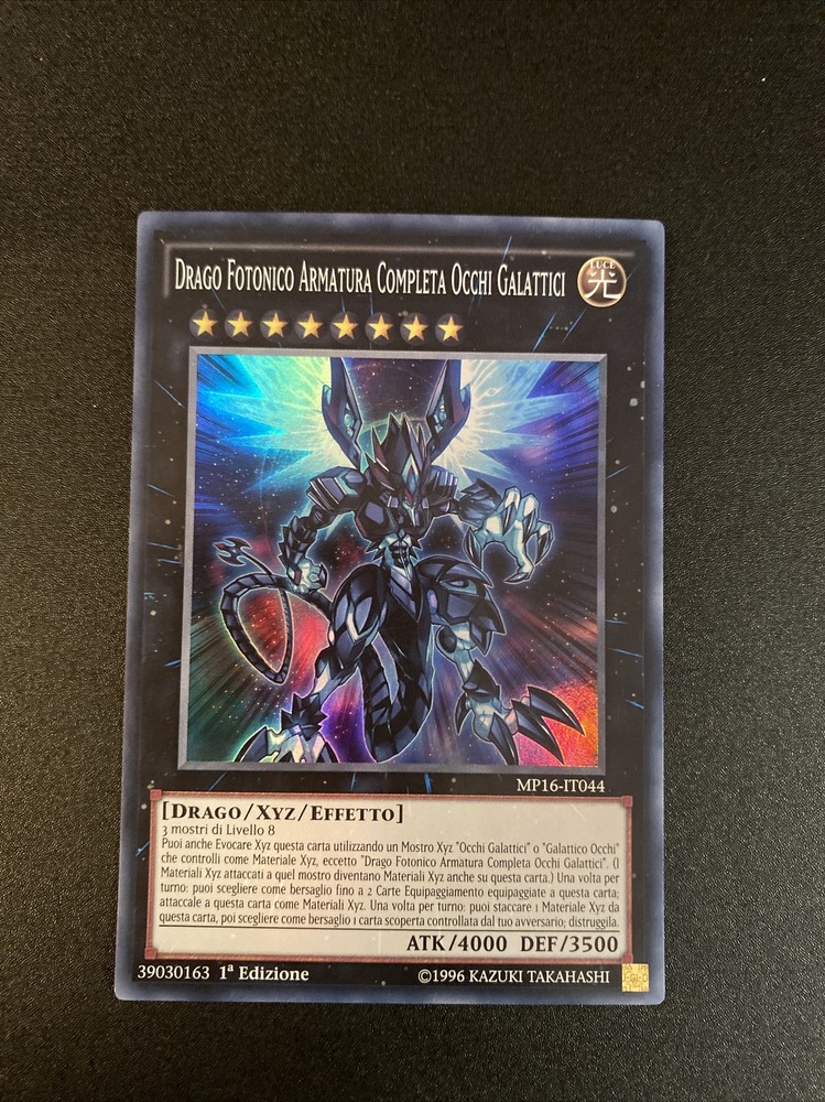 Yu-Gi-Oh! Yugioh Dragon Photonic Armour Complete Eye Galactic Mp16-It044 1ed The description of this item has been automatically translated. If you have any questions, please feel free to contact us. WELCOME CONDITIONS: Paper in photo, scroll through the images EXPLORE OUR YU-GI-OH! PRODUCTS SECTION SEALED AND GET INSPIRED. Click here! https://www.ebay.it/str/ne4r07yugiohitalia/Prodotti-sigillati/_i.html?store_cat=34734427017 ARE YOU LOOKING FOR ACCESSORIES TO PROTECT YOUR COLLECTION? Click on the link: https://www.ebay.it/str/ne4r07yugiohitalia/Accessori/_i.html?store_cat=34734420017 (if they are not automatically merged when adding products to the cart) 1 Add to your cart (without clicking the 'Buy Now' button) all the cards you wish to purchase. 2 Open the ebay cart page 3 Click the 'Request Total From Seller' button. THIS PROCEDURE IS ONLY POSSIBLE VIA PC. DOES NOT WORK WITH APP / TABLET / SMARTPHONE. 4 Once the total has been successfully combined, we will send you an message/email and you can proceed to payment by going to the cart. PRICES AND SERVICES AT THE END OF THE DESCRIPTION PACKAGES: We prepare the packages/envelopes in the best possible way, protecting the purchased products as best as possible. If by chance the item arrives different, damaged or with problems, contact us and we will provide you with all the assistance possible. WARRANTY - INFO - CONTACTS WE GUARANTEE THAT ALL OUR PRODUCTS ARE 100% ORIGINAL. We have many cards/boxes/accessories for sale, also take a look at our ebay store you might find something interesting. CLICK THE LINK ( https://www.ebay.it/str/ne4r07yugiohitalia ) For any doubt or question write to us without problems, we will answer you as soon as possible. THANKS FOR VISITING. SHIPPING: ITALY Post 1 confirms the delivery of the package Recommended With tracking code and complete control of the journey. Courier express (GLS or tnt ) With tracking code and complete control of the journey. - If you have any preferences on the type of courier, write us a message, otherwise we will do it for you. - Possibility of having the package delivered to a collection point, write to us if you need help looking for it EUROPE ( I combine shipping Priority No tracking Registered Shipment tracking Courier service Shipment tracking AMERICA, ASIA, OCEANIA AND AFRICA ( I combine shipping ) Priority No tracking Registered Shipment tracking Courier service AMERICA Shipment tracking Courier service all over the world Shipment tracking Courier service oceania Shipment tracking Cost may vary depending on the size and weight of the package. FOR ANY QUESTION CONTACT ME. Click on the link: https://www.ebay.it/str/ne4r07yugiohitalia/Accessori/_i.html?store_cat=34734420017 4 Once the total has been successfully combined, we will send you an message/email and you can proceed to payment by going to the cart. We prepare the packages/envelopes in the best possible way, protecting the purchased products as best as possible. If by chance the item arrives different, damaged or with problems, contact us and we will provide you with all the assistance possible. We have many cards/boxes/accessories for sale, also take a look at our ebay store you might find something interesting. CLICK THE LINK ( https://www.ebay.it/str/ne4r07yugiohitalia ) - If you have any preferences on the type of courier, write us a message, otherwise we will do it for you. - Possibility of havi Grado Vedi Foto Condizione carta scorri le foto Gioco Yu-Gi-Oh! Set set yu gi oh Tipo di mostro Effect Tipo di carta Effetto Materiale Carta consistente Produttore Konami Finitura Standard Fascia di età 4+ Illustratore Kazuki Takahashi