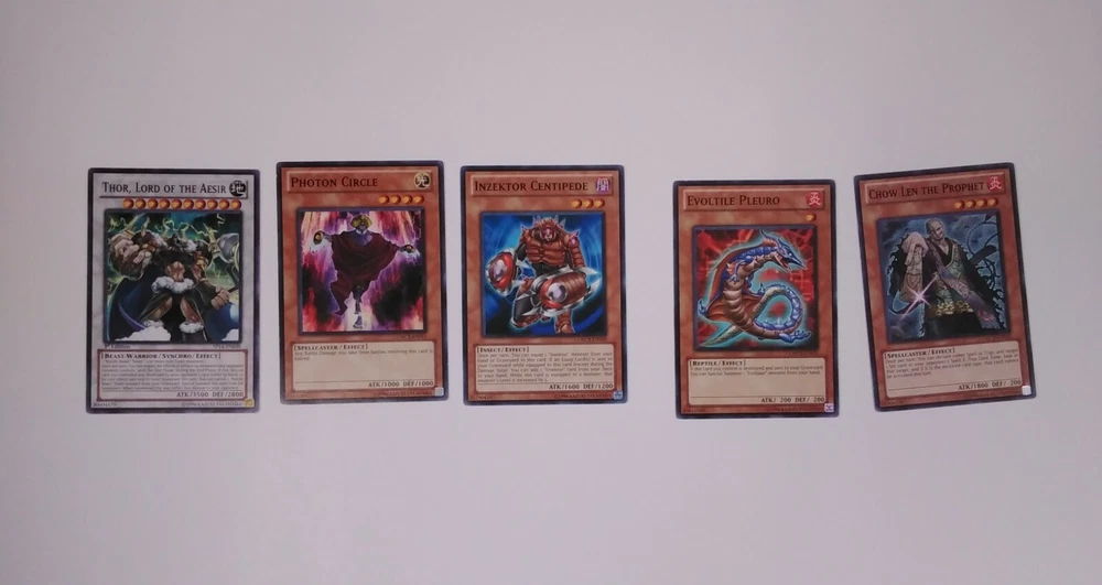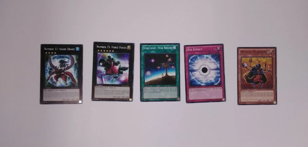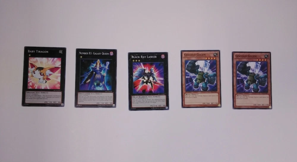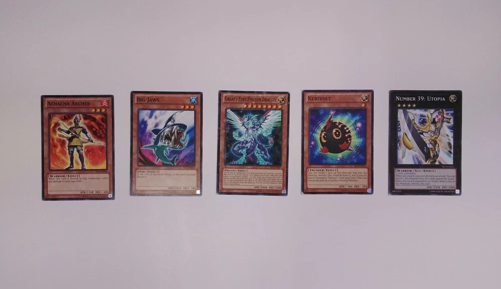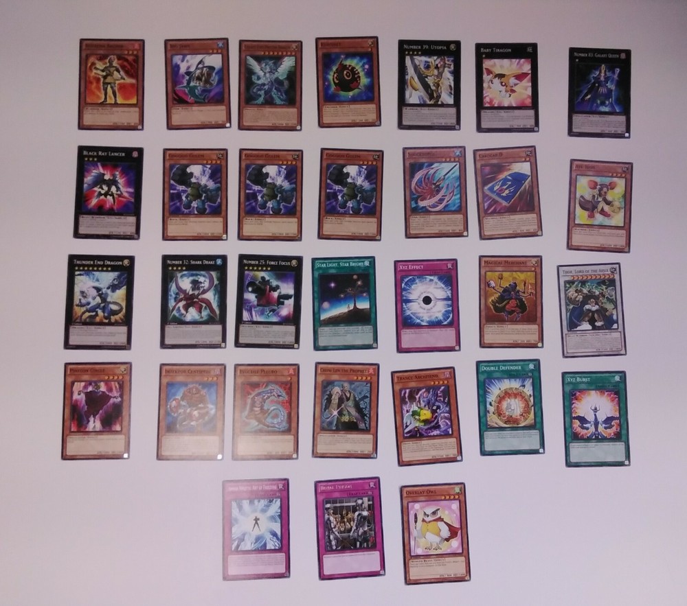 A lot of 31 Yu-Gi-Oh cards, many of them featured in the Yu-Gi-Oh Zexal anime. The cards are in lightly-played to near-mint condition: SP13-EN004 - Achacha Archer - Common SP13-EN006 - Big Jaws - Common SP13-EN008 - Galaxy Eyes Photon Dragon - Starfoil Rare SP13-EN013 - Kurivolt - Common SP13-EN021 - Number 39: Utopia - Common SP13-EN027 - Baby Tiragon - Common SP13-EN028 - Number 83: Galaxy Queen - Common SP13-EN029 - Black Ray Lancer - Starfoil Rare SP14-EN001 - Gogogo Golem - Common 1st Edition (x2) SP14-EN001 - Gogogo Golem - Starfoil Rare 1st Edition SP14-EN005 - Shocktopus - Starfoil Rare 1st Edition SP14-EN012 - Cardcar D - Common 1st Edition SP14 - EN016 - Aye-Iron - Common 1st Edition SP14-EN021 - Thunder End Dragon - Common 1st Edition SP14-EN023 - Number 32: Shark Drake - Common 1st Edition SP14-EN026 - Number 25: Force Focus - Starfoil Rare 1st Edition SP14-EN034 - Star Light, Star Bright - Starfoil Rare 1st Edition SP14-EN037 - XYZ Effect - Starfoil Rare 1st Edition SP14-EN040 - Magical Merchant - Common 1st Edition SP14-EN048 - Thor, Lord of the Aesir - Common 1st Edition ORCS-EN011 - Photon Circle - Common ORCS-EN019 - Inzektor Centipede - Common ORCS-EN025 - Evoltile Pleuro - Common ORCS-EN032 - Chow Len the Prophet - Common ORCS-EN035 - Trance Archfiend - Common ORCS-EN049 - Double Defender - Common ORCS-EN061 - XYZ Burst - Common ORCS-EN068 - Armor Ninjitsu Art of Freezing - Common ORCS-EN079 - Royal Prison - Rare GAOV-EN003 - Overlay Owl - Common