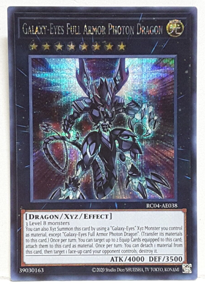 Buying Instruction – Must Read You are now buying: I) Product Description - Yugioh Asian-English Galaxy-Eyes Full Armor Photon Dragon RC04-AE038 Secret Rare II) Shipping (By Registered Post)-International/Local (DHL eCommerce or equivalent for international shipping) - 1 st Card = $11.00(Int), $11.00(local), additional item +$2.00 per card. III) Tracking number will be provided. IV) Packaging Method - The card will be insert into a sleeve and put into a top loader and put in a bubble envelope. V) Stock Availability - All items are in stock at the time of listing. - In the case of the stock being unavailable due to unforeseen circumstances, you will be able to refund. International Buyers – Please Note: Import duties, taxes, and charges are not included in the item price or shipping cost. These charges are the buyer's responsibility. Please check with your country's customs office to determine what these additional costs will be prior to bidding or buying. Powered by SoldEazy