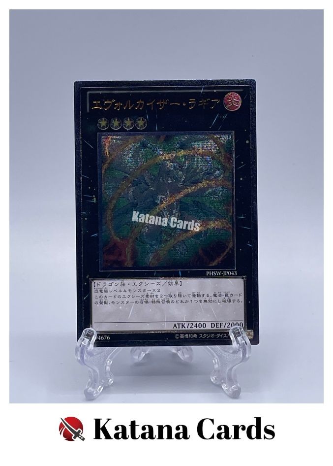 Yugioh Cards | Evolzar Laggia Ultimate Rare | PHSW-JP043 Japanese C ondition Near Mint to Excellent Yugioh Cards Check our Yugioh cards here. D iscounts!!! Buy more than 2 cards in my store, Save 3 - 5% off for each cards. Yugioh Cards Check our Yugioh cards here. Discounts are applied automatically by simply adding the product to your cart! If the discount is not applied automatically due to eBay's system error, please inform us of the "Discount Error" in the message after purchasing the item. We will manually apply the discount based on the number of items purchased. S hipping We usually ship within 3 - 5 business days of receiving cleared payment. Economy Shipping - No Tracking Number - It takes 7 - 30 days after shipment. Expedited Shipping - Tracking Number - It takes 3 - 10 days after shipment. If you buy more than 2 cards and choose Expedited Shipping, please select Expedited Shipping for just 1 item. We will ship the items in one package. P ayment We can be contacted at any time through eBay messages if you have any questions, comments or product requests. We will respond to you within 24 hours and do our best to help you out! We encourage our customers to contact us with any questions or concerns! We'd like to be sure you are completely satisfied with your purchase. We do not mark merchandise values below value or mark items as gifts. US and International government regulations prohibit such behavior. I nternational Buyers - Please Note Import duties, taxes, and charges are not included in the item price or shipping cost. These charges are the buyers responsibility. Please check with your country's customs office to determine what these additional costs will be prior to bidding or buying.