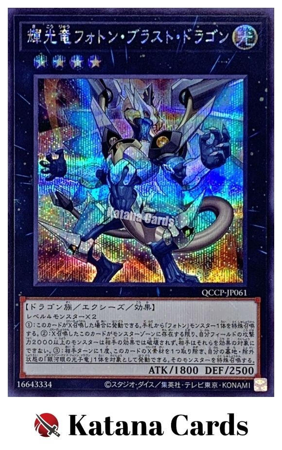Yugioh Cards | Starliege Photon Blast Dragon Secret Rare | QCCP-JP061 Japanese C ondition Near Mint to Excellent Yugioh Cards Check our Yugioh cards here. D iscounts!!! Buy more than 2 cards in my store, Save 3 - 5% off for each cards. Yugioh Cards Check our Yugioh cards here. Discounts are applied automatically by simply adding the product to your cart! If the discount is not applied automatically due to eBay's system error, please inform us of the "Discount Error" in the message after purchasing the item. We will manually apply the discount based on the number of items purchased. S hipping We usually ship within 3 - 5 business days of receiving cleared payment. Economy Shipping - No Tracking Number - It takes 7 - 30 days after shipment. Expedited Shipping - Tracking Number - It takes 3 - 10 days after shipment. If you buy more than 2 cards and choose Expedited Shipping, please select Expedited Shipping for just 1 item. We will ship the items in one package. P ayment We can be contacted at any time through eBay messages if you have any questions, comments or product requests. We will respond to you within 24 hours and do our best to help you out! We encourage our customers to contact us with any questions or concerns! We'd like to be sure you are completely satisfied with your purchase. We do not mark merchandise values below value or mark items as gifts. US and International government regulations prohibit such behavior. I nternational Buyers - Please Note Import duties, taxes, and charges are not included in the item price or shipping cost. These charges are the buyers responsibility. Please check with your country's customs office to determine what these additional costs will be prior to bidding or buying.