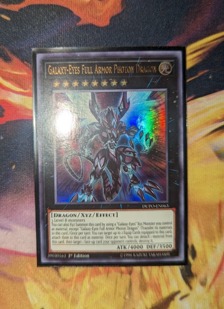 Yugioh Galaxy-Eyes Full Armor Photon Dragon DUPO-EN063 Ultra Rare 1st Ed NM. Condition is Ungraded. Shipped with eBay Standard Envelope for Eligible Items up to $20....