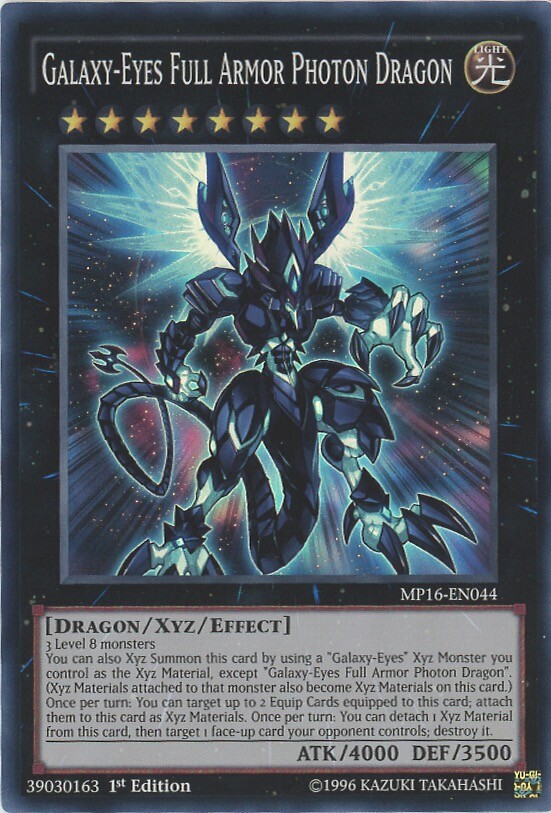 Yugioh Galaxy-Eyes Full Armor Photon Dragon MP16-EN044 Super Rare Mint Condition You can find more Yu-Gi-Oh cards of all value and rarity in our other listings All cards are in excellent condition unless stated otherwise and the photos are of cards we own but may not be the exact card you receive due to the quantities listed.