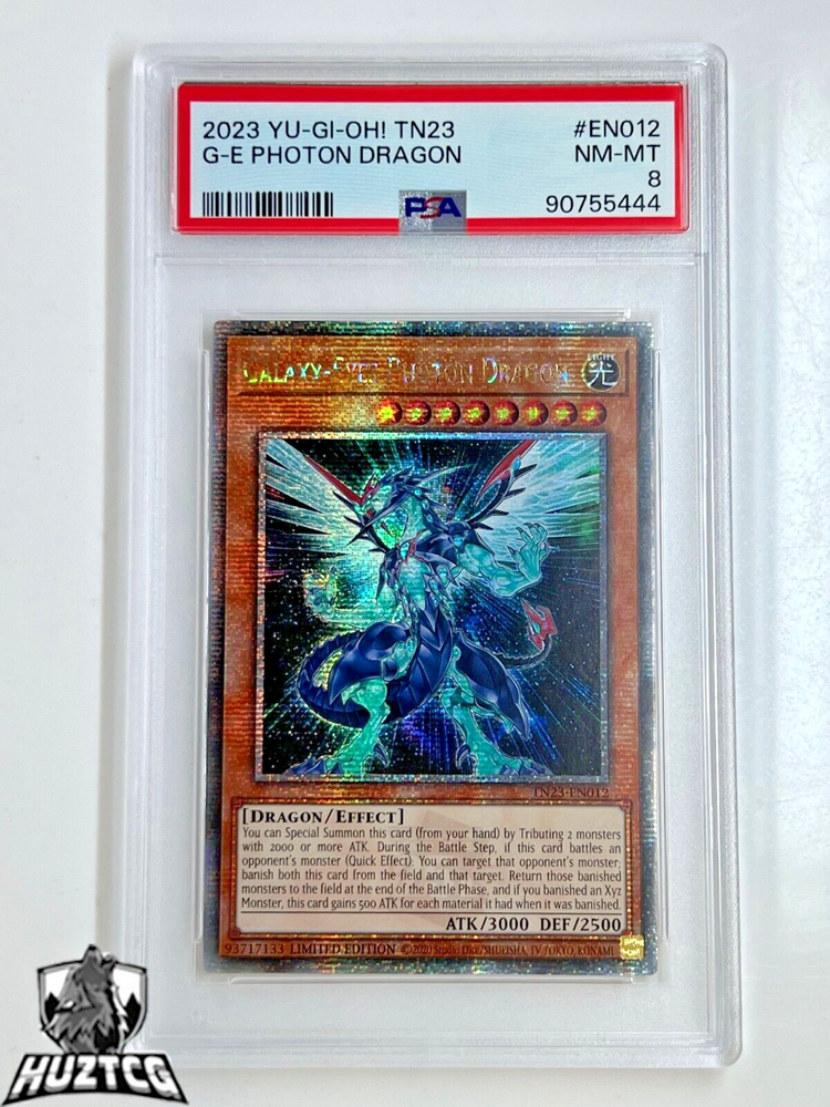 Welcome to HuzTCG ! You are bidding on the following Yugioh PRODUCT (Note all prices are the best on eBay and all cards are brand new booster fresh and in English): 1x Galaxy-Eyes Photon Dragon - TN23-EN012 - Secret Rare - PSA 8 Shipping: All cards will be dispatched within a sleeve and sent in padded packaging within 1-2 working days after purchase is completed. All orders will be sent via Royal Mail and free shipping is offered to all UK customers. About us: We are a fast growing, trusted company made from players/collectors and gaming enthusiasts just like all of you! You can rest assured that we have a passion for all things cards and game related and our passion translates into the service we want to provide. Have peace of mind that we will do everything we can to be a brand you can trust! Our Service Promise: We aim to provide 5* service to all our customers and if you feel for any reason you we have fell short on this, then contact us and we will do our best to rectify this. All cards are in NM condition or better.