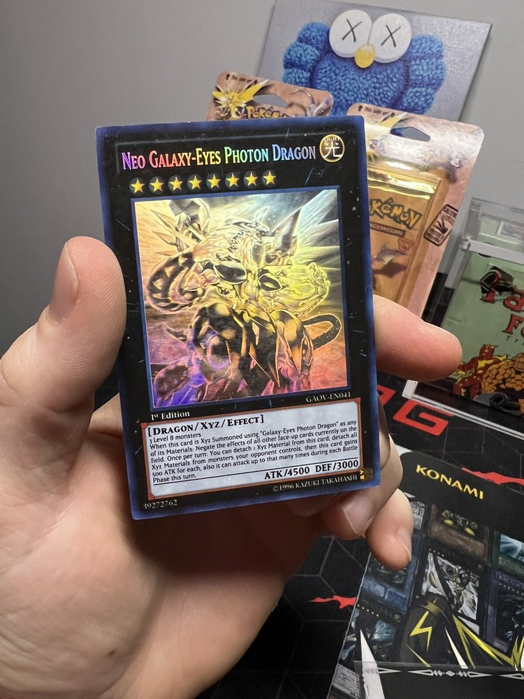 This card is absolutely stunning—the ghost rare finish makes Neo Galaxy-Eyes Photon Dragon shine like a true collector’s gem. The artwork pops with incredible detail, and the 1st edition stamp adds serious value. If you’re a Yu-Gi-Oh! fan or just love rare cards, this one’s a must-have. The condition is flawless, and it looks even better in person. Highly recommend for any duelist’s collection!