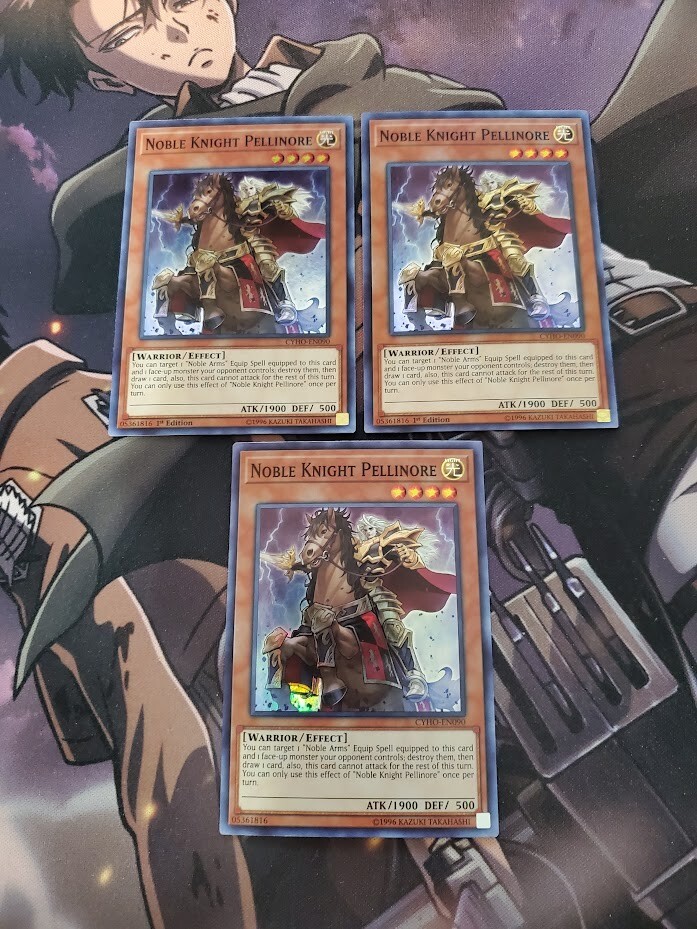 Free eBay listing template designed by dewiso.com Yugioh - Noble Knight Pellinore CYHO-EN900 NM Unlimited/1st ed Super Rare x3 Product This a Yugioh Product that is being sold! Condition is exactly as pointed out in title. For you're reference: NM: Near Mint VLP: Very Lightly Played LP: Lightly Played MP: Moderately Played HP: Heavily Played Shipping This listing will be shipped via card sleeve/penny sleeve and a top loader via letter mail. If you are purchasing an order of over $150 I will provide shipping with tracking free! Contact If you have any questions whether it be more pictures of the back or clarification on an order please contact me! We will do everything to Help! Also if you have multiple items or even have specific things you are looking for, reach out and we might just have it! There are no refunds, items are final sale! If the item has been incorrectly described or wrongly sent, please send images and we will sort it out right away! If the product has X2 or X3, it means it will either come with 2 of the same card or 3 of the same card. Be sure to always check the title of the listing! Great quality products that we ship across North America! Be sure to leave a review when you receive the item! Collection and Bulk Pokemon/Yugioh Purchases If you have any collections or bulk cards that you wish to sell please contact me and send pictures of what you're looking to sell! Rates: Contact me for rates! Reminder: I am looking to make profit when buying and selling, so please when reaching out realize that we both have to profit off the transaction!