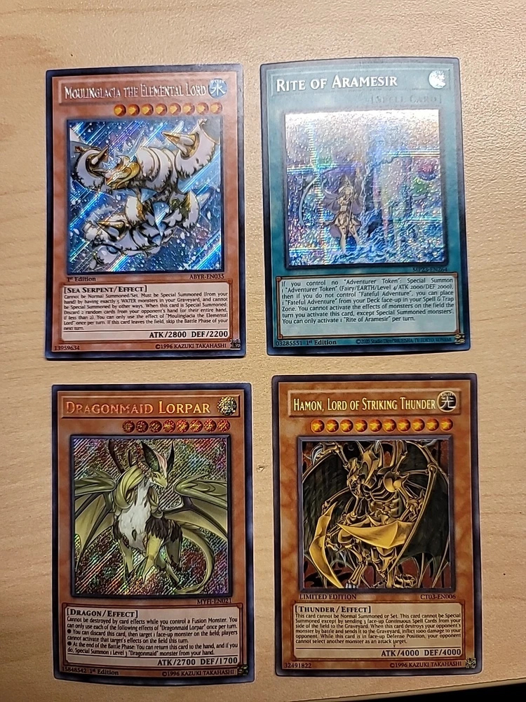 They are all Secret Rare even if the picture don't do them justice. Let me know if you have any questions or want better pics. Thanks...