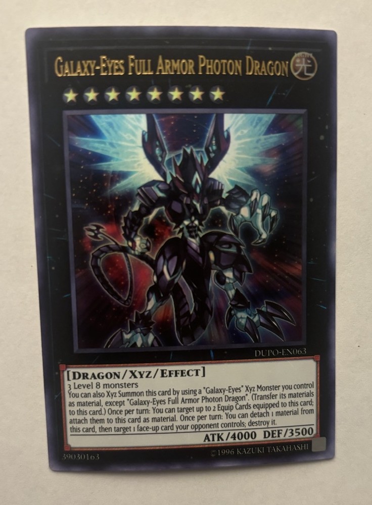Yugioh TCG - Galaxy-Eyes Full Armor Photon Dragon - Ultra Rare 1st ed-DUPO-EN063. Condition is Ungraded. Shipped with eBay Standard Envelope for eligible items up to $20.