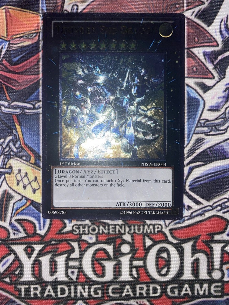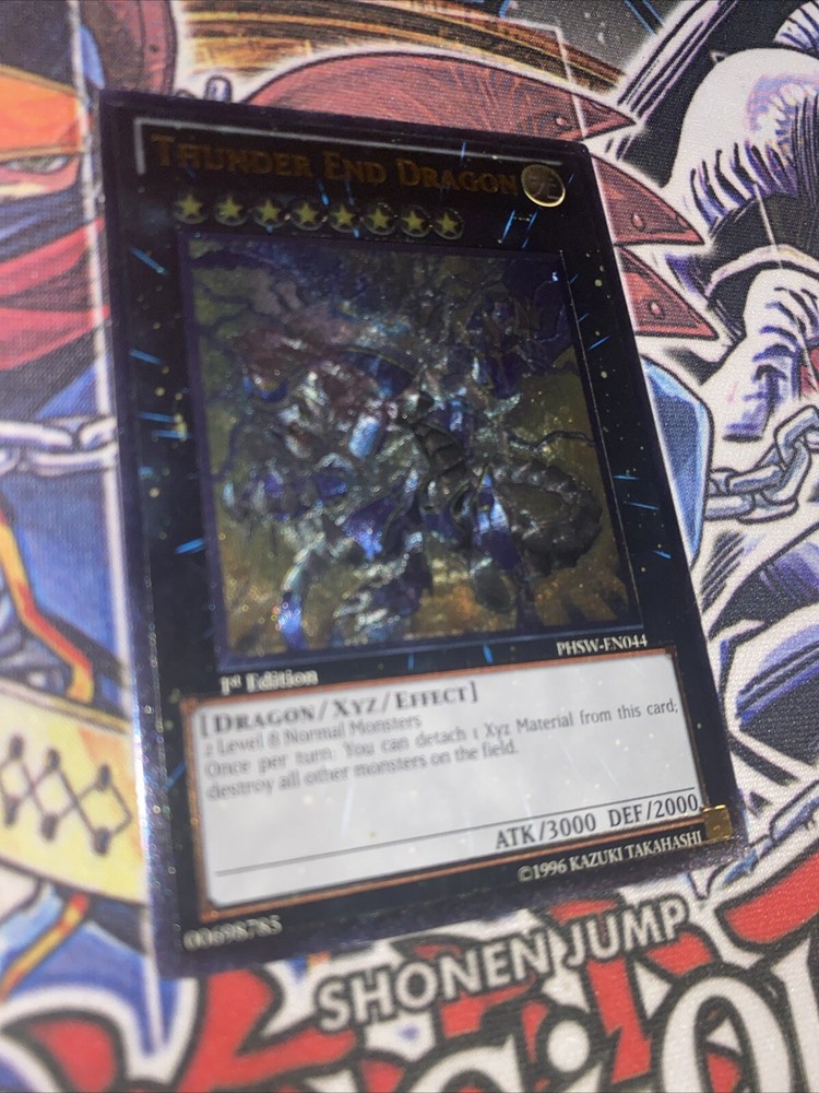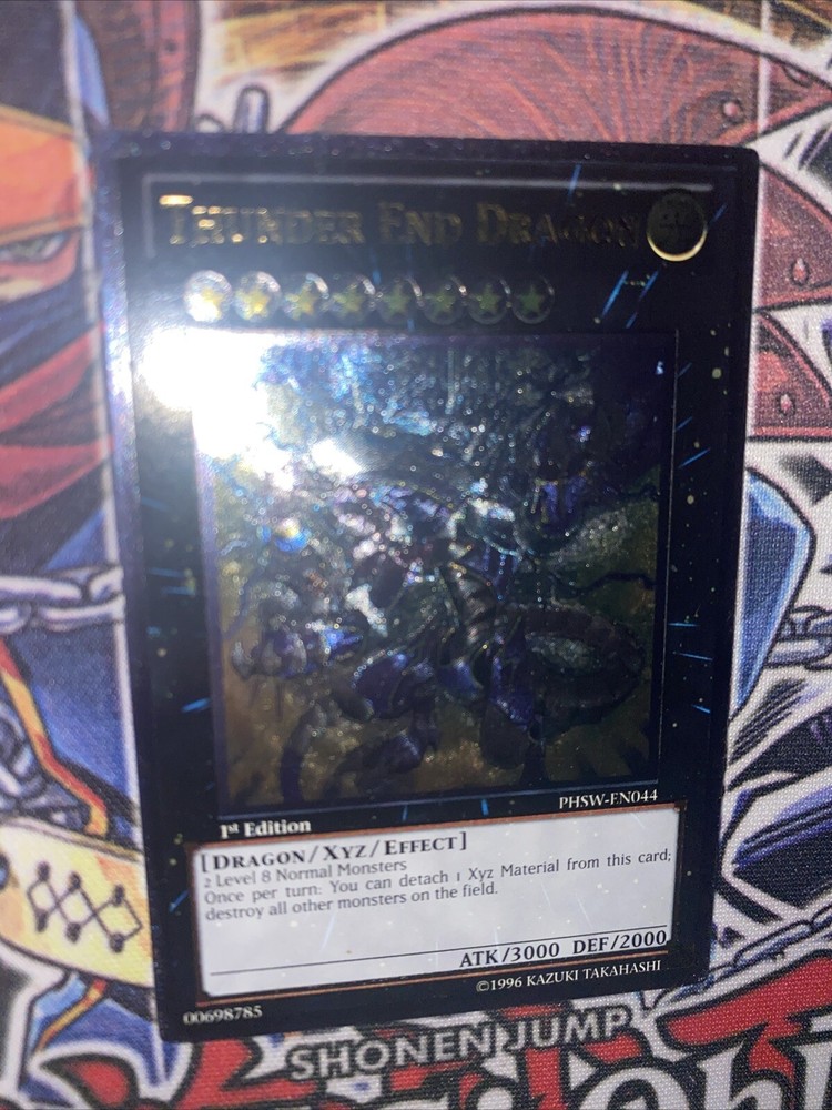 This Yugioh! card is a must-have for any collector or player. The Thunder End Dragon, with its Ultimate Rare rarity and 1st Edition status, is a valuable addition to any collection. This Xyz card, with its Thunder creature/monster type, is sure to impress in battle. The card features a stunning foil finish and is in Near Mint condition, making it an ideal choice for anyone looking for a high-quality card. Manufactured by Konami, this card is part of the Photon Shockwave set and has the card number PHSW-EN044. Suitable for ages 6 and up, this card is perfect for anyone who loves the Yu-Gi-Oh! TCG game.
