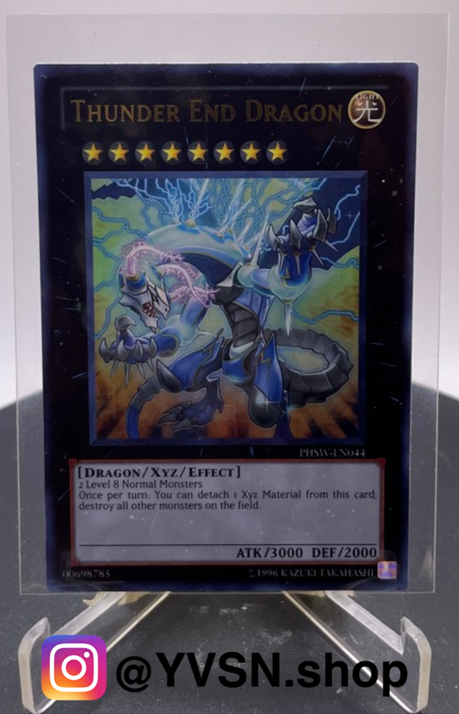 Yugioh! Thunder End Dragon PHSW-EN044 Ultra Rare NM/M - All cards are in mint or near mint condition unless stated in the heading and/or description. The card you see in the photo of the ad is what you are getting. Photo's/closer-up photos of the card are available upon request, ask away! - Condition: Great condition! - The shipped item will be protected with a card sleeve and placed in a bubble mailer envelope - I would appreciate feedback as well please thank you :)) As well, check out my other listings as I have plenty of other (graded) young guns for sale!