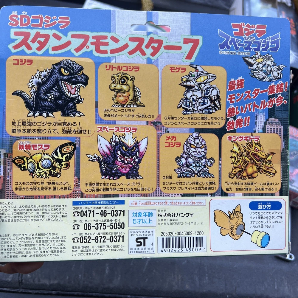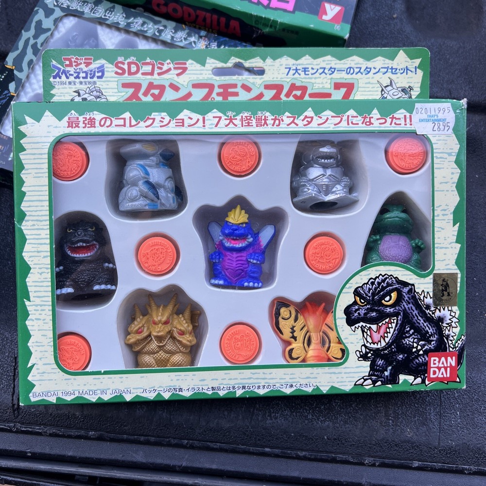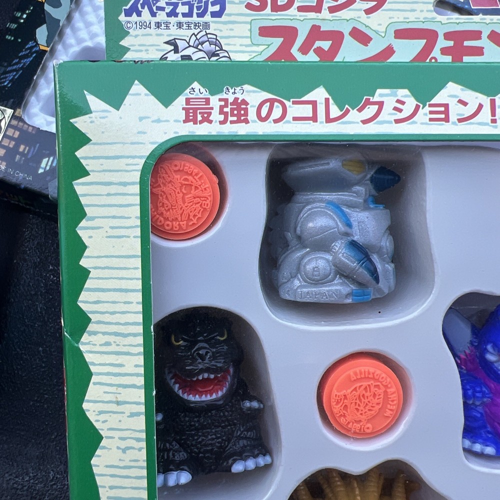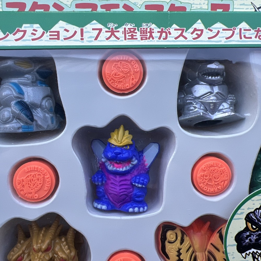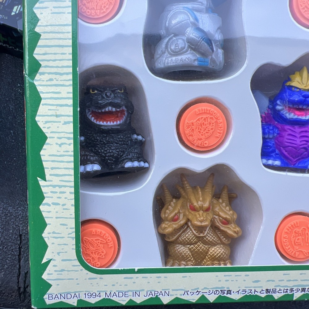 c1994 Bandai Godzilla finer size figures a stamps New in the box. 7 figures with associated stamps. Unused. 2” high figures. Great for a collector or collection. Lot CC Please let me know if you have any questions Capitol Salvage - Facebook and Instagram