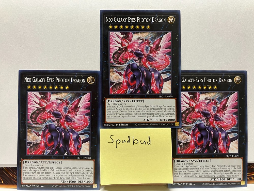 Fantastic addition to my collection! The Galaxy-Eyes Photon Dragon arrived in near-mint condition, just as described—super crisp with barely any imperfections. The artwork pops, and it looks incredible sleeved up for dueling. Packaged securely too, no worries about damage. Very happy with this purchase, feels like pulling it fresh from a pack. Highly recommend for any Yu-Gi-Oh! fan or competitive player needing this classic card!